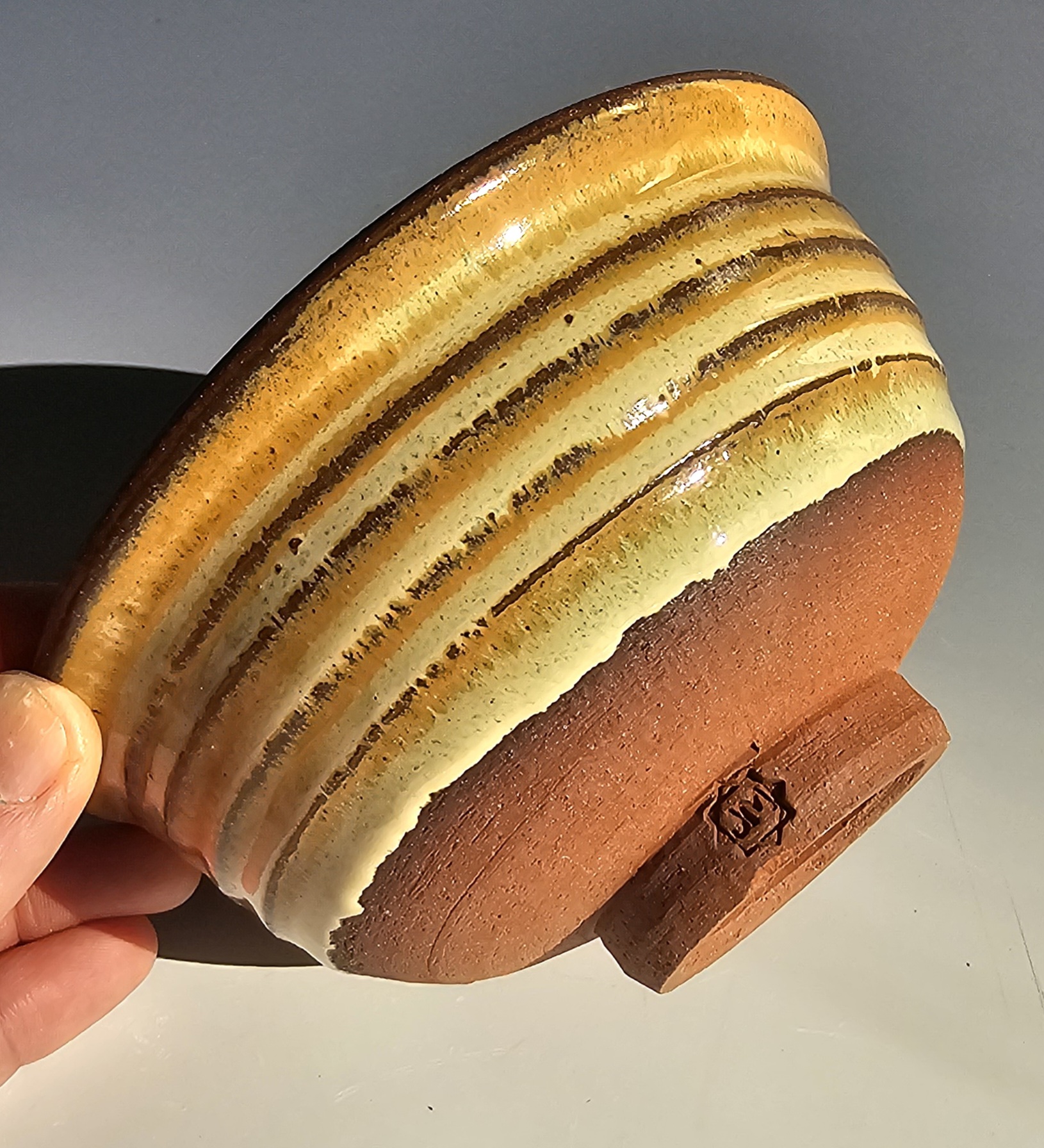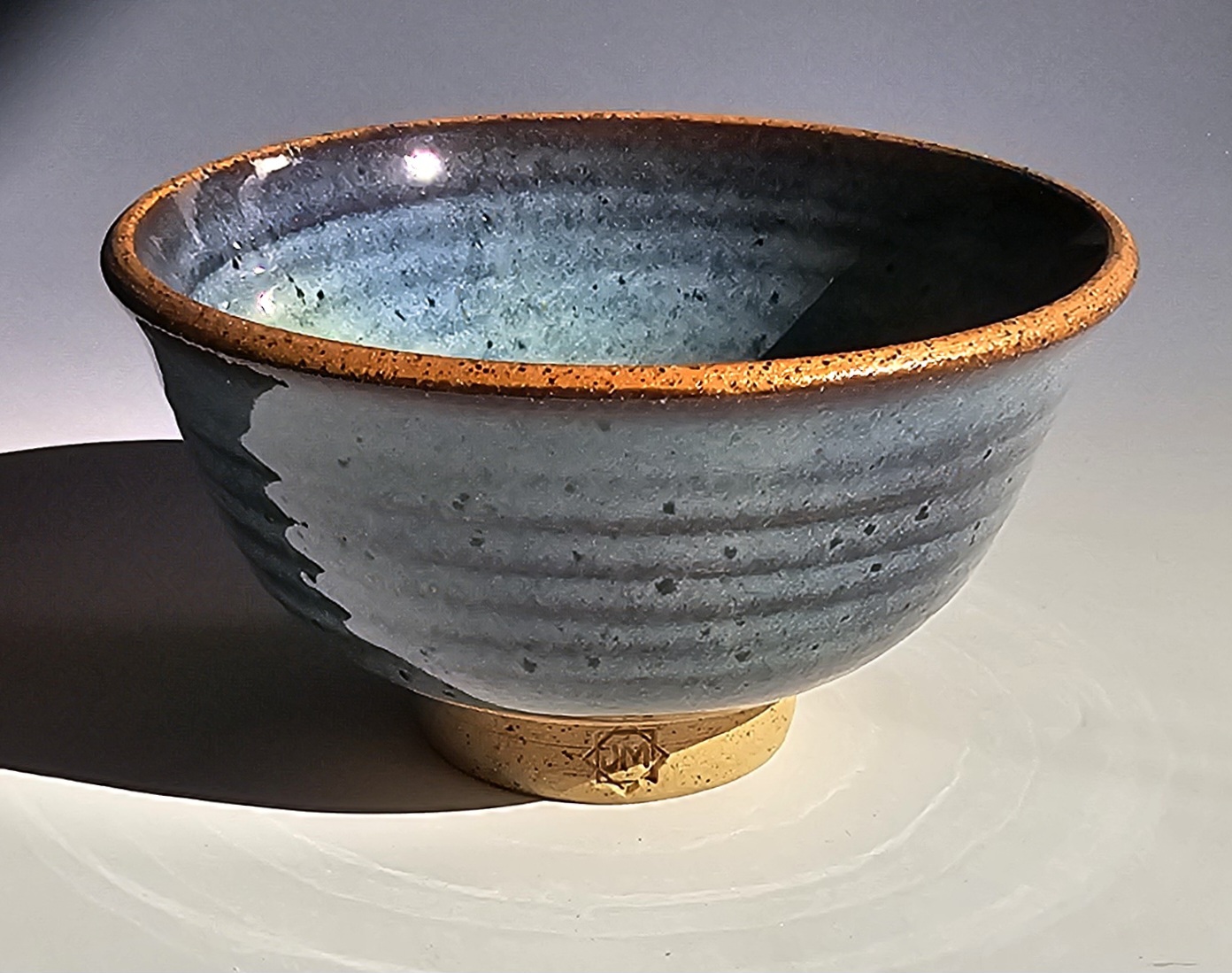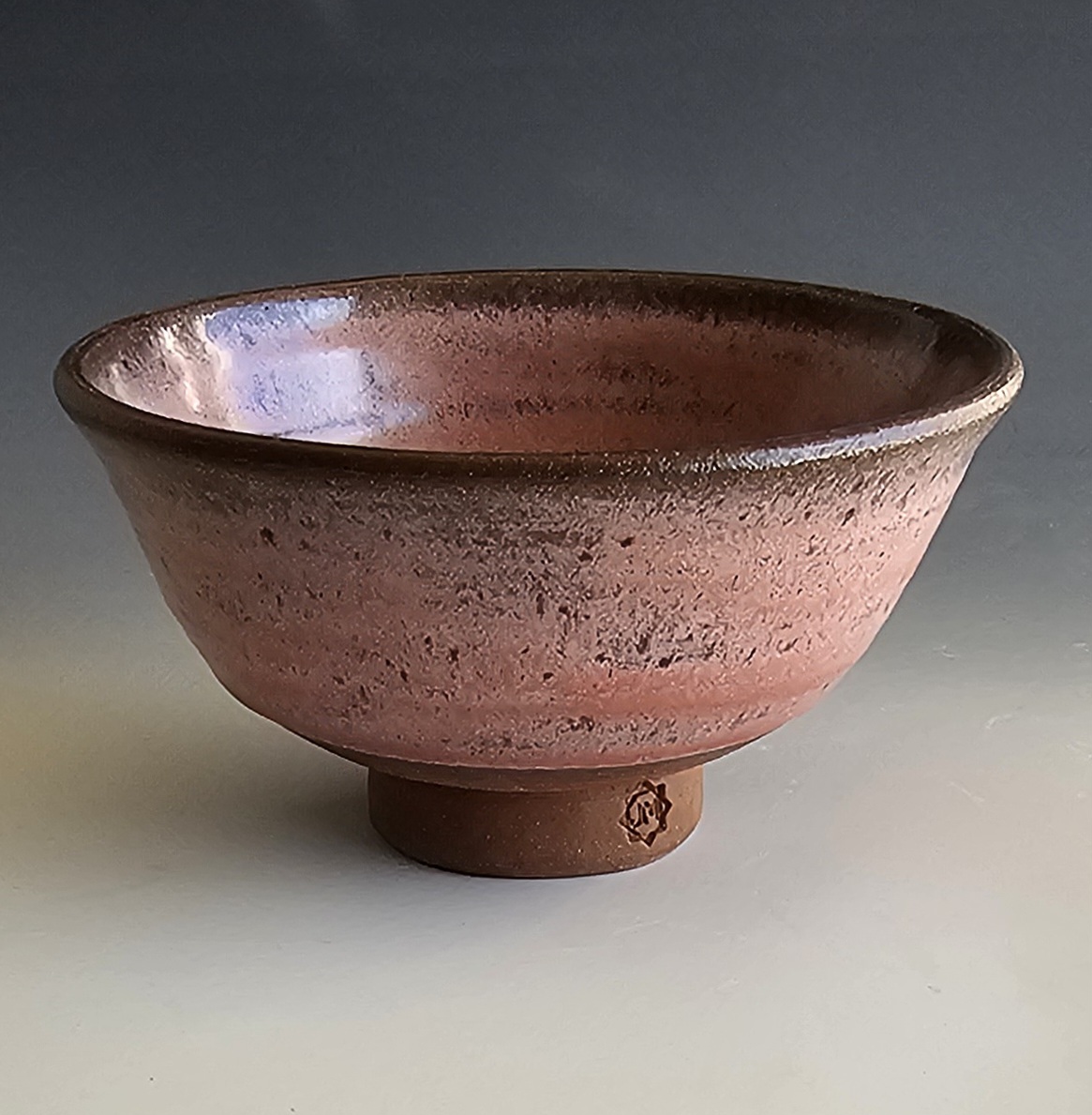 Red clay stoneware bowl with opal lustre glaze. Measures: 3" H x 5.75 Dia. Weighs 1 pound. Dishwasher/food safe. Handmade by Jaime Marum in Texas. Price includes shipping and packaging.