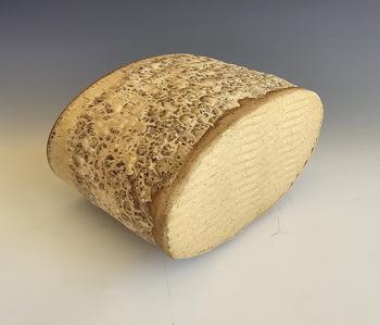 Oval textured planter made from buff stoneware clay with matte white liner and macadamia glazes. Measures: 5.25" H x 8" L x 4" W. Weighs: 3.5 lbs. Made in Texas by Jaime Marum. Price includes shipping and packaging.